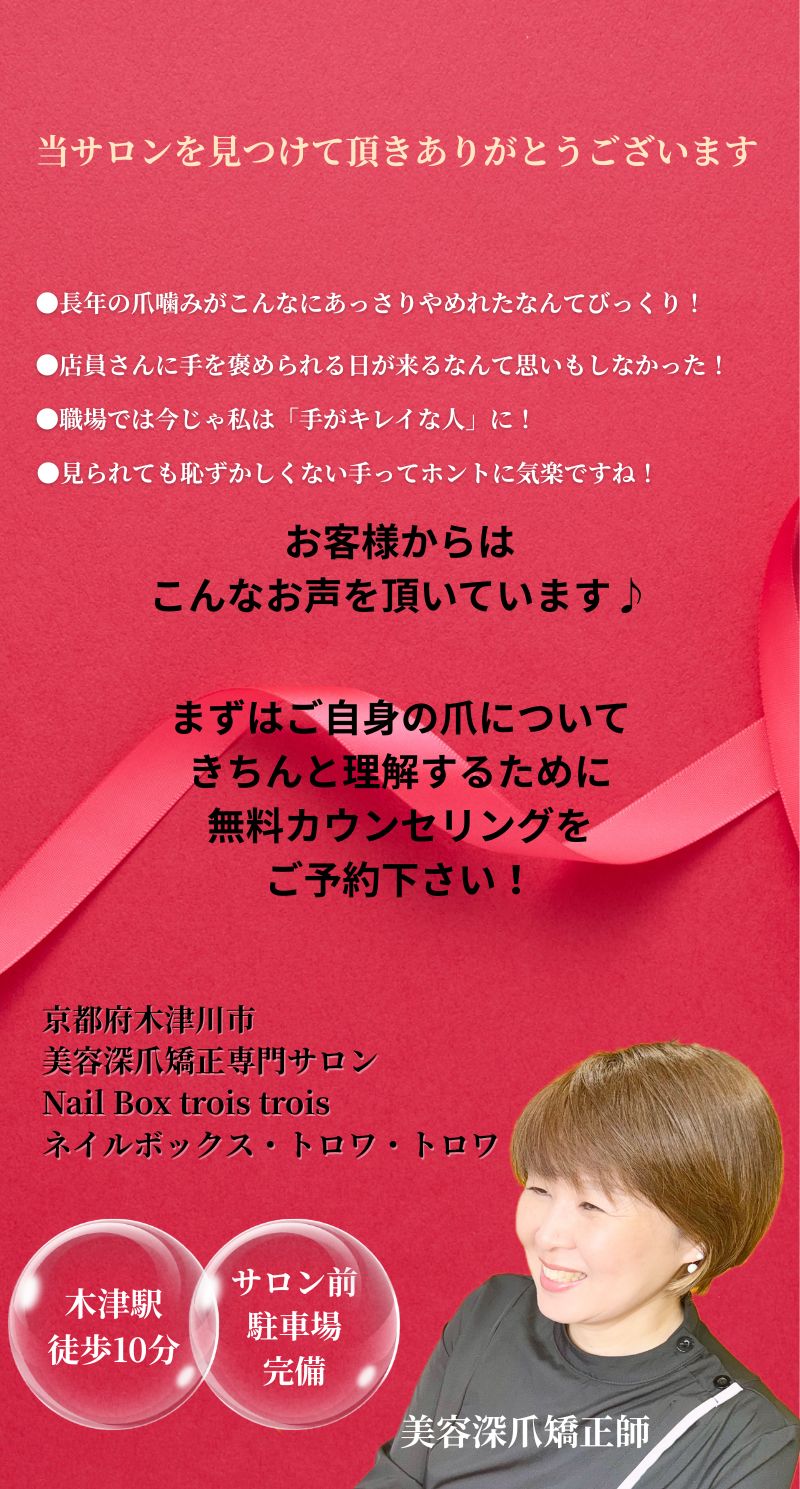 | 店舗名 | 美容深爪矯正&極上のお手入れサロン Nail Box trois trois ネイルボックス・トロワ・トロワ |